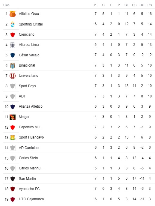 Liga 1: Resultados de la fecha 7 y tabla de posiciones